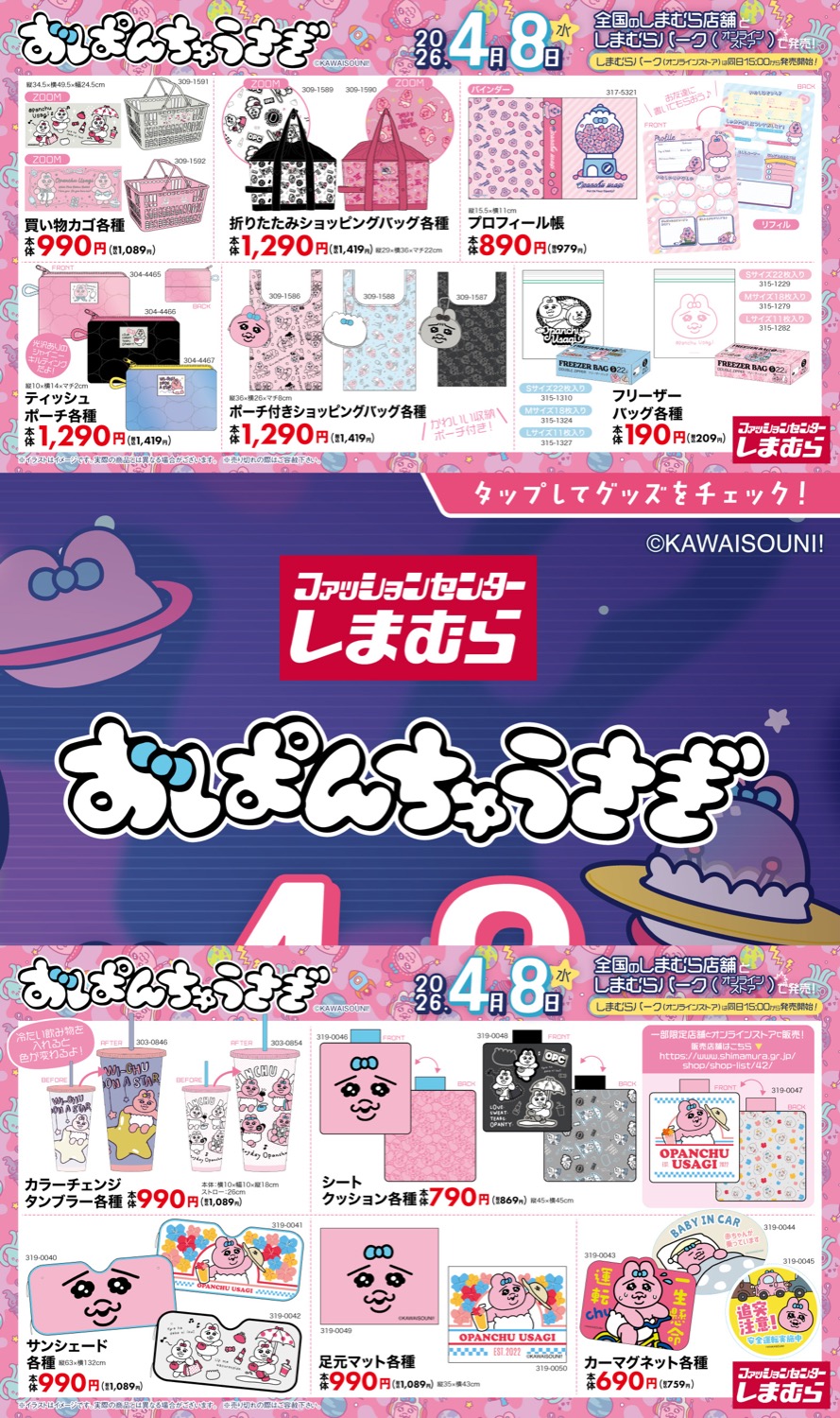 4月8日(水)より発売! #おぱんちゅうさぎ のグッズが全国のしまむらに登場!