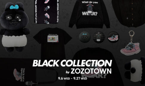 コラボ限定の描き下ろしによる、真っ黒になったおぱんちゅの「おぱんちゅうさぎ BLACK COLLECTION by ZOZOTOWN」アイテムがラインナップする。