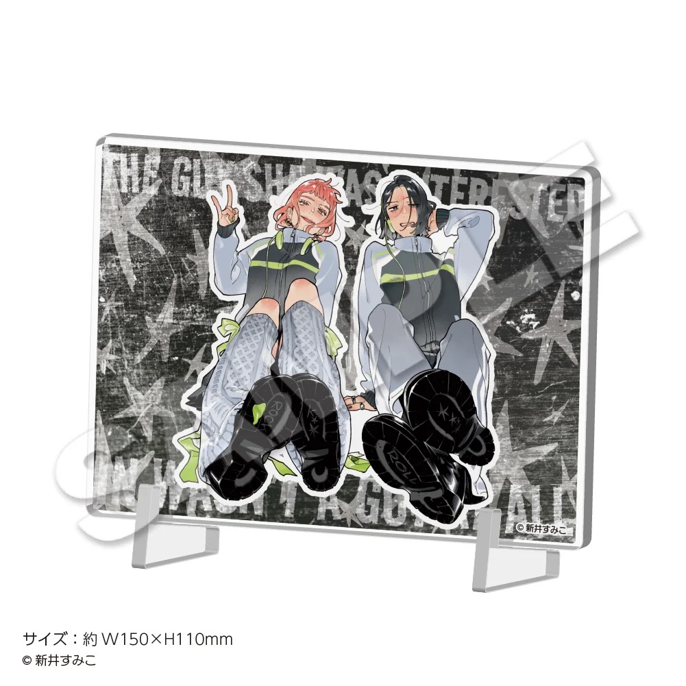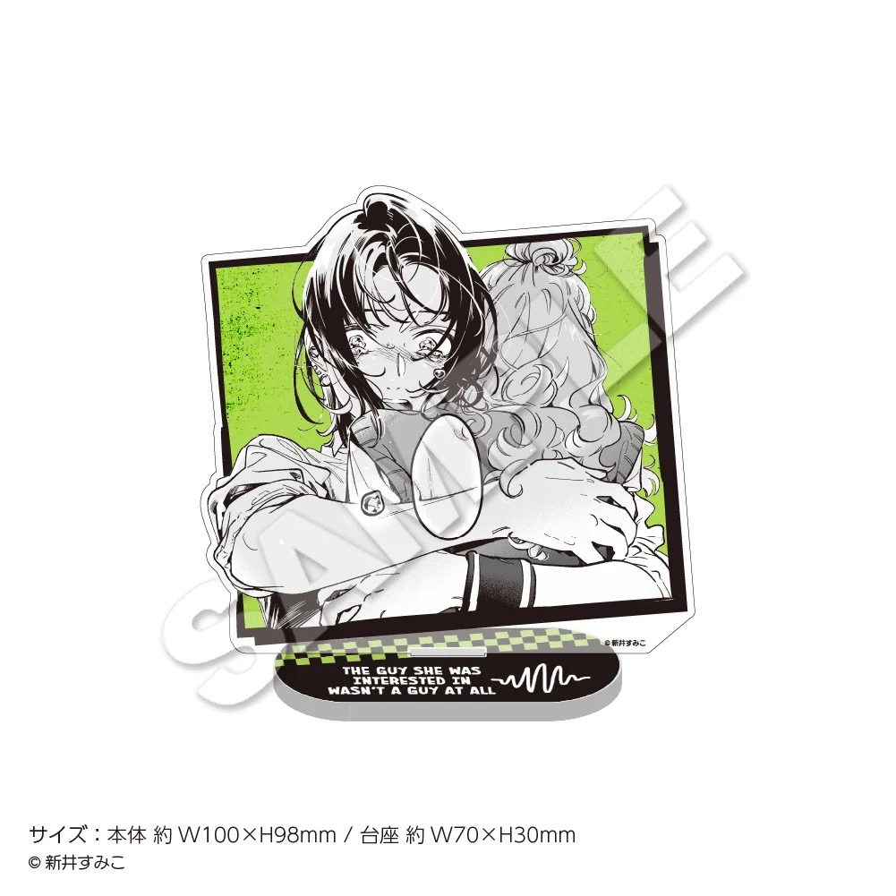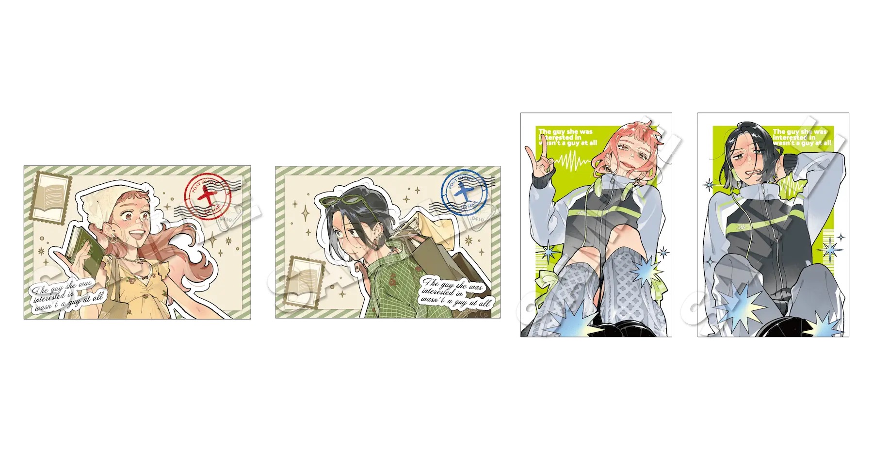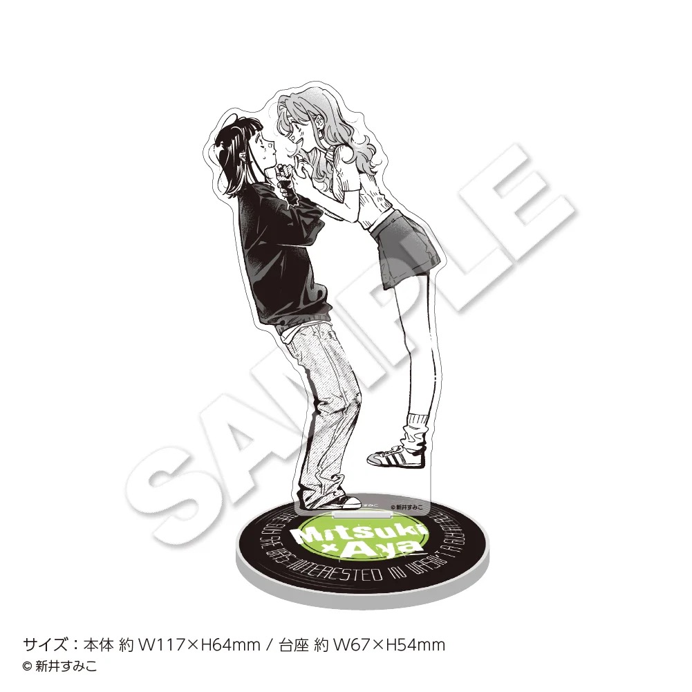 「気になってる人が男じゃなかった」ポップアップストアでは、古賀みつき・大沢あやが書籍を手にするイラストや、「music」をテーマに描かれた描き下ろしイラストを使用した新作グッズが多数販売される他、グッズをお買い上げ2,500円(税込)ごとに特典として描き下ろしノベルティー「特製ステッカー 全8種」をランダムに1枚プレゼント!