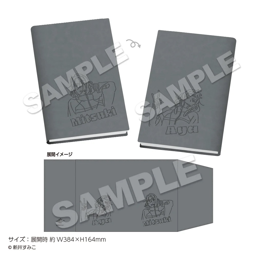 2種類の異なるテーマで描かれた、古賀みつき・大沢あやの描き下ろしイラストを使用した「トレーディング メタル缶バッジ」「アクリルスタンド 書籍」「ピック型キーホルダー ハロウィン」「ブックカバー」「刺繍風Tシャツ」などがラインナップする。
