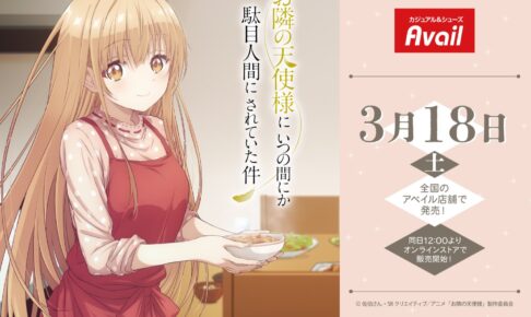 2023年3月18日より全国一部のアベイルにて、アニメ「お隣の天使様にいつの間にか駄目人間にされていた件」のアパレルアイテムやコラボグッズが登場!
