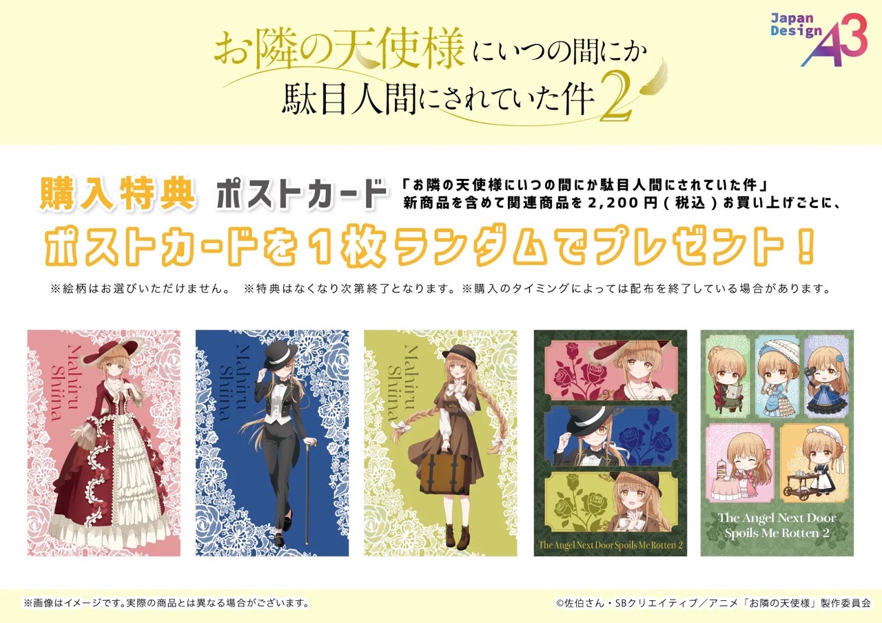 「佐伯さん」先生原作、イラスト「はねこと」先生による人気ライトノベルを原作とするTVアニメ「お隣の天使様にいつの間にか駄目人間にされていた件 2」のポップアップストアが、メロンブックス秋葉原店・メロンブックス大阪日本橋店にて、2025年10月17日〜10月26日まで開催される。