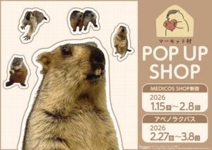 日本初のマーモットカフェ「マーモット村」× メディコス・エンタテインメントのポップアップストアが、東京・大阪にて2026年1月15日より開催。「マーモット村」の可愛らしいマーモットたちのお写真を使用したグッズが多数登場!さらに、お買い上げ2,000円(税込)毎に「特典ミニカード(全5種)」を1枚プレゼント!