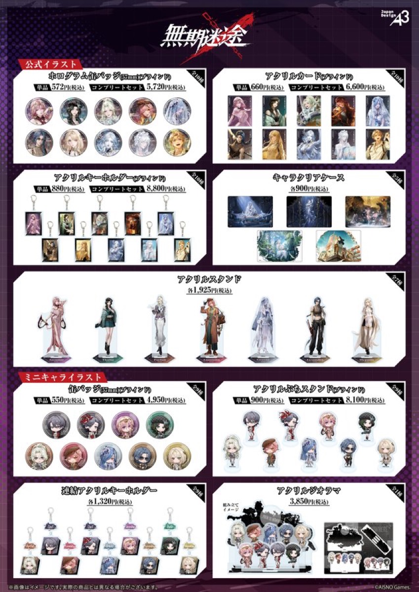 「無期迷途」ポップアップストアでは、イベント限定の公式イラストとミニキャライラストを使用した新作グッズが多数販売される。