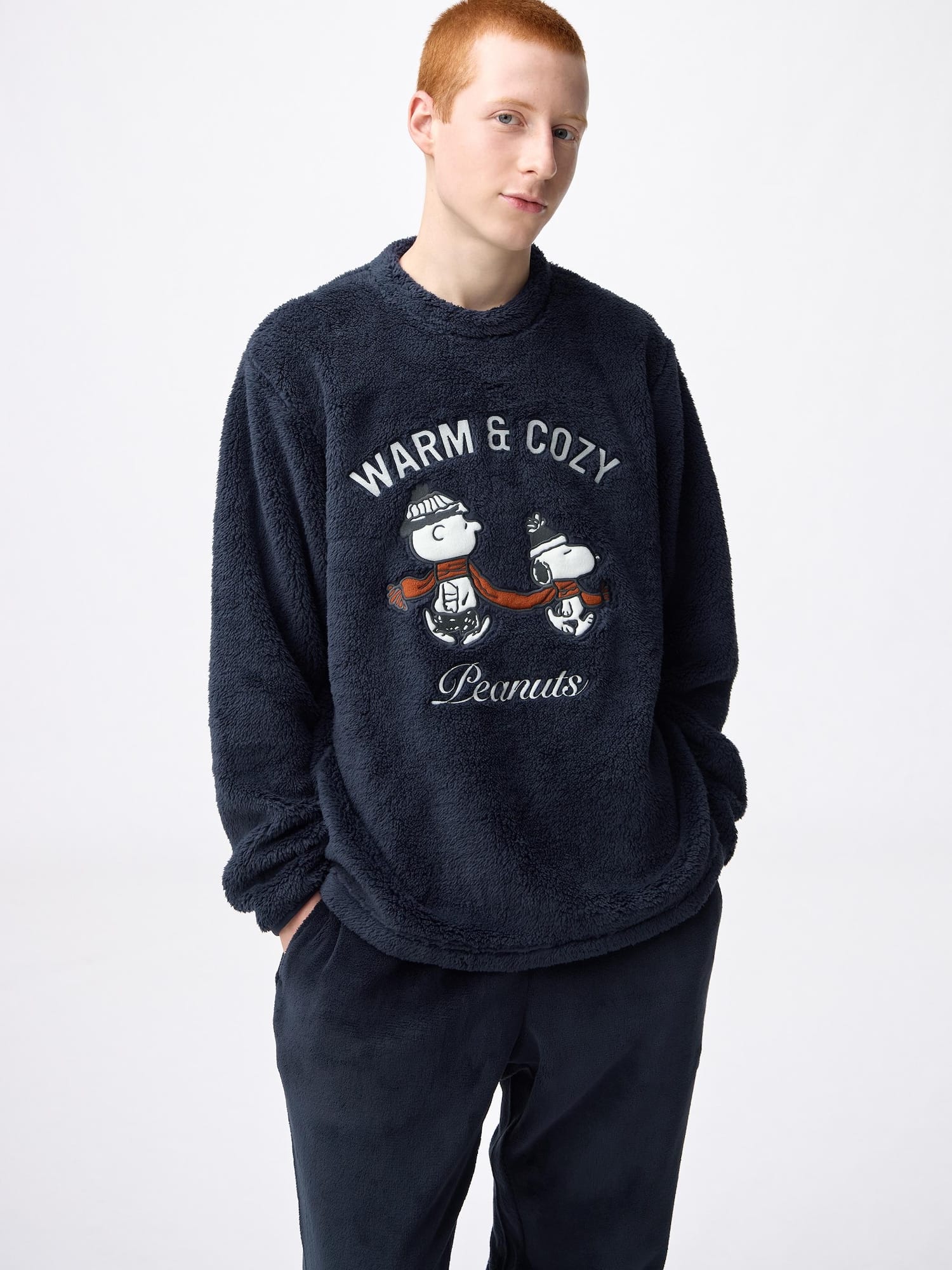 「PEANUTS × GU」では、冬の訪れを楽しむスヌーピーと仲間たちをテーマにした、メンズ & レディースのラウンジウェアが多数ラインナップ!