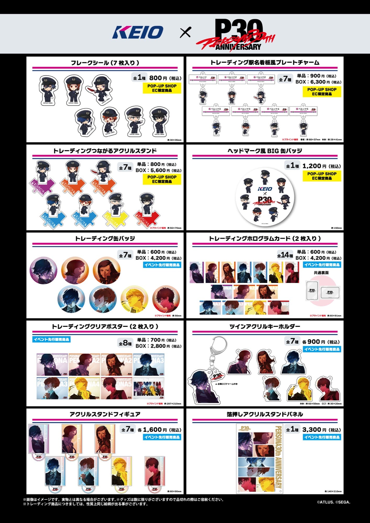 「ペルソナシリーズ」ポップアップストアでは、30周年記念公式イラストや京王の駅係員・乗務員の制服を着用したオリジナルミニキャライラストを使用したグッズが登場!