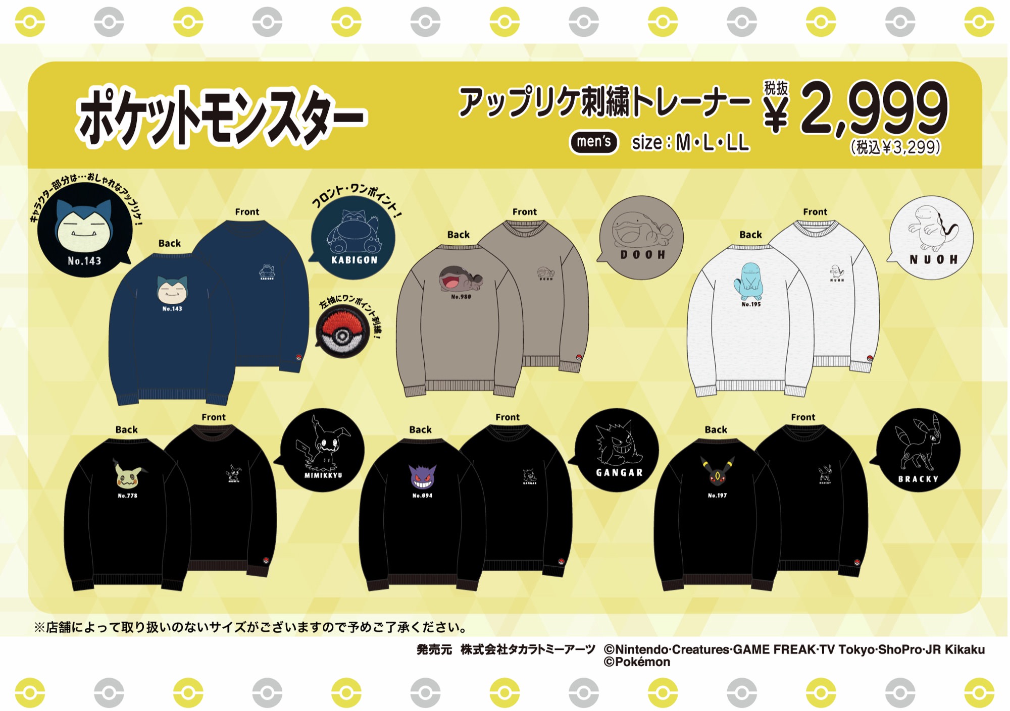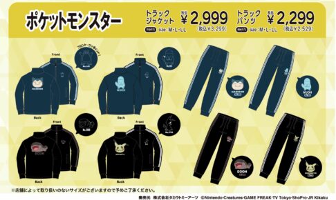 「ポケットモンスター × ドンキホーテ/アピタ」では、カビゴン・ミミッキュ・ヌオー・ブラッキー・ドオー・ゲンガーら人気ポケモン達をデザインした「ジャージ」「トレーナー」「アラジンパンツ」などドンキホーテ/アピタ限定のグッズが多数ラインナップ!