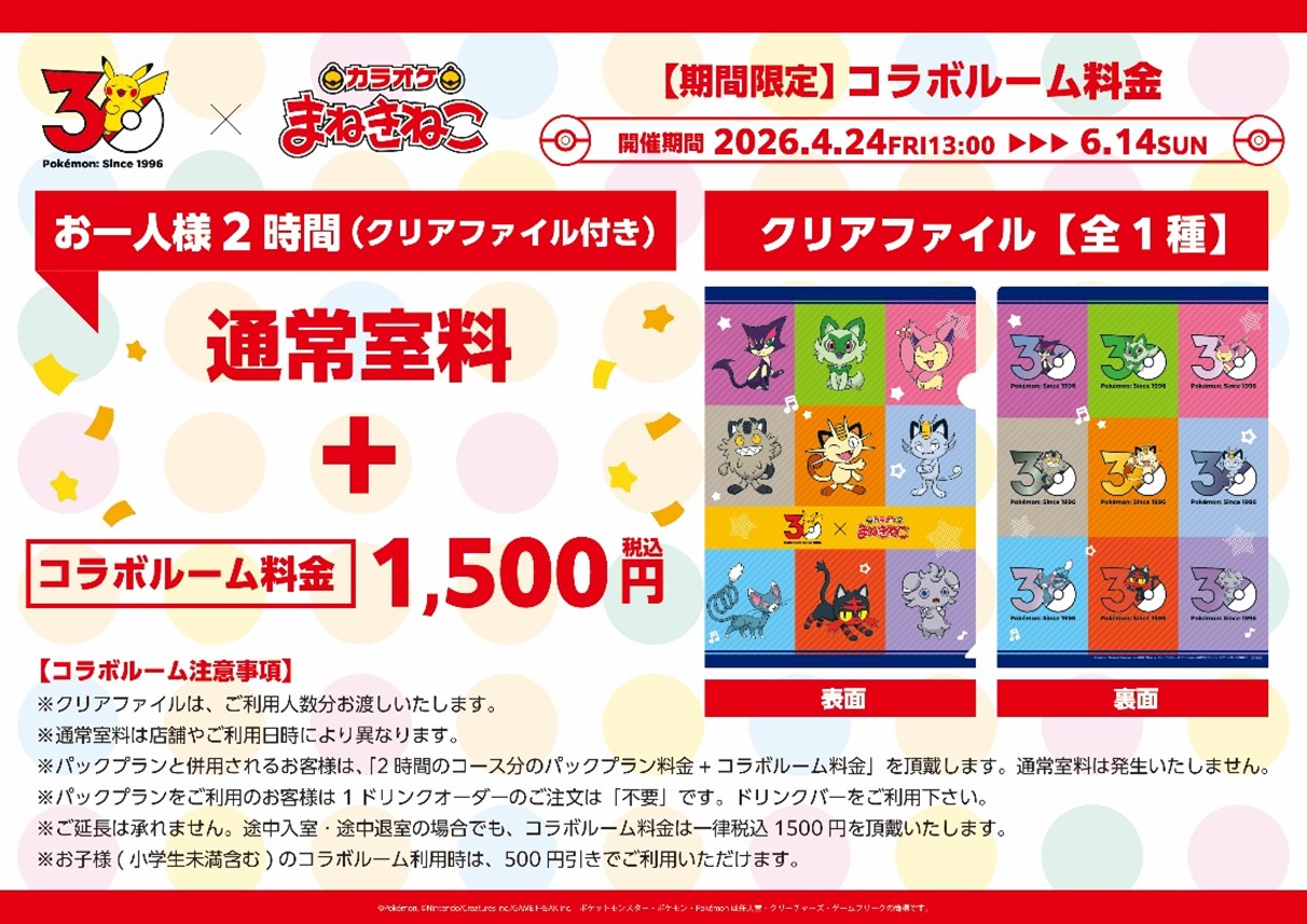 「ポケットモンスター × カラオケまねきねこ」では、ポケモンの30周年を記念した大規模コラボキャンペーンを展開。