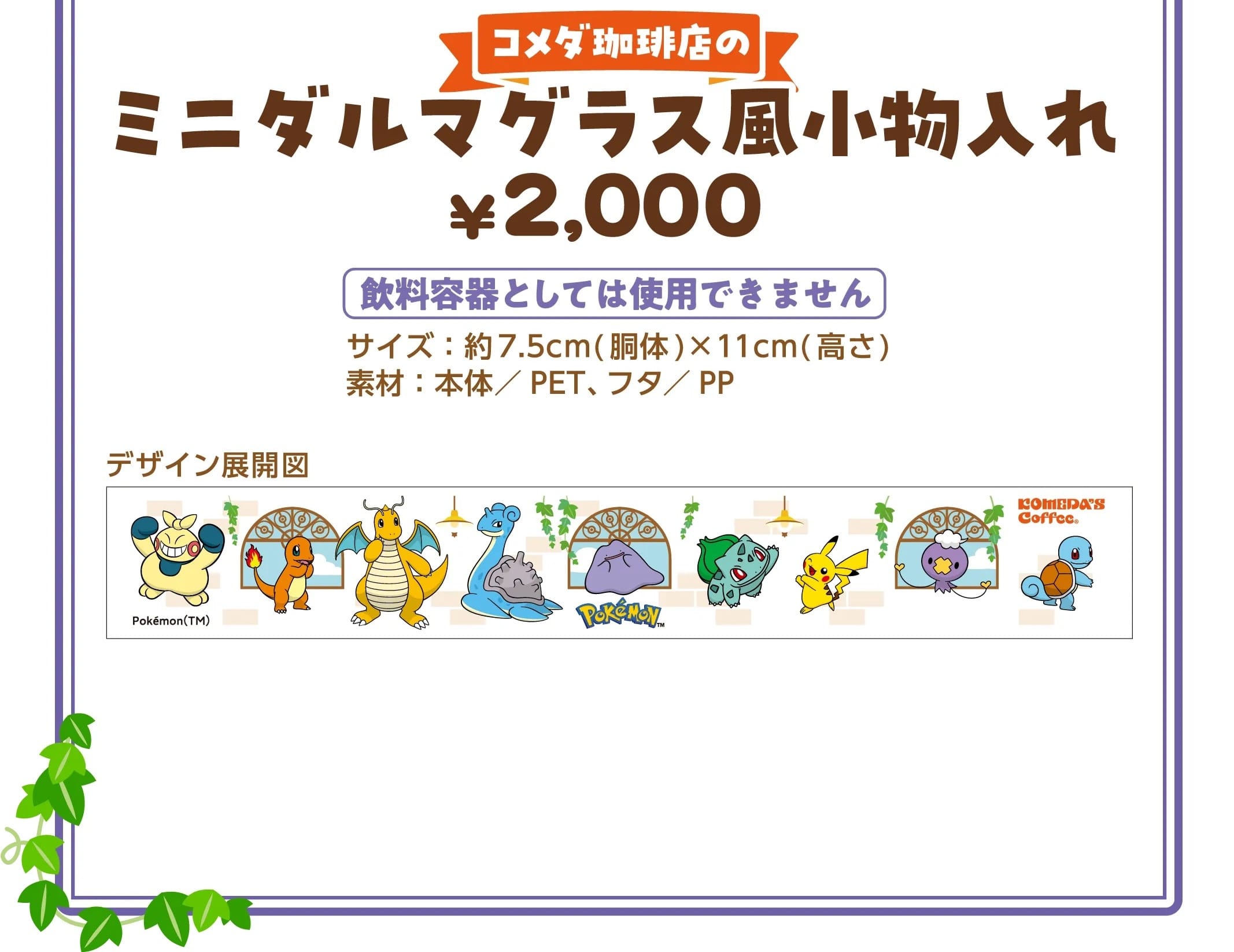 2026年3月5日より開催される「ポケモン × コメダ珈琲」コラボでは、カイリューやラプラス・フシギダネ・ピカチュウ・ゼニガメたちがデザインされた「コメダ珈琲店のミニダルマグラス風小物入れ」を販売!