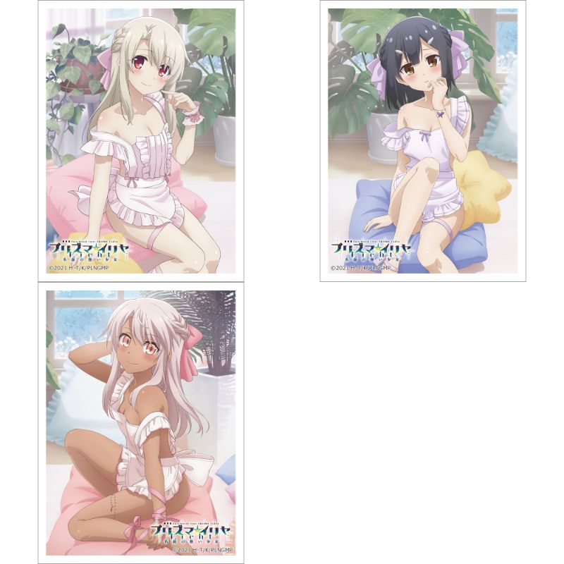 白 × ピンクのフリルが可愛いエプロン衣装に身を包んだ、イリヤ・美遊・クロエらプリヤ3人娘の新規描き下ろしイラストがお目見え!「特大アクリルスタンド」や「クリアファイル」、「スリーブ」「デッキケース」「ラバーマット」などサプライ含む全9種がラインナップ。