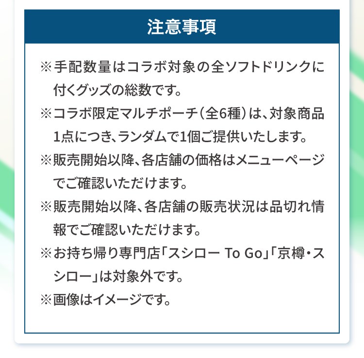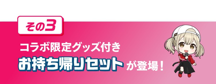 その他にも、コラボ限定マルチポーチ付きソフトドリンクやコラボ限定グッズ付きお持ち帰りセットなど盛りだくさん!