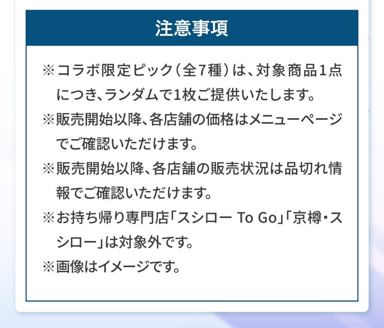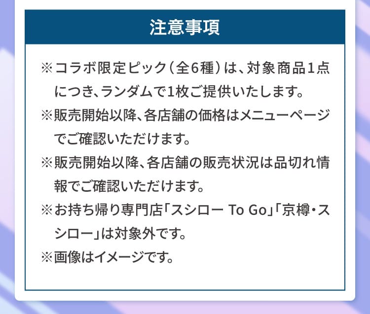 「プロジェクトセカイ × スシロー」コラボでは、ピック・ステッカー付きのコラボメニューや、対象商品を注文すると貰える限定カードが登場。