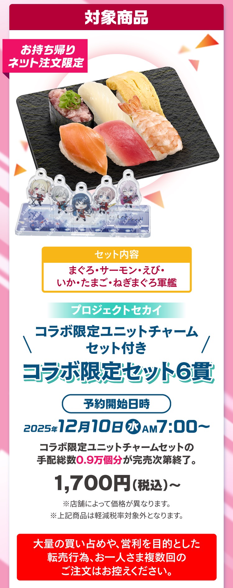 2025年12月10日より開催される「プロジェクトセカイ × スシロー」コラボでは、グッズ付きコラボメニューが登場!