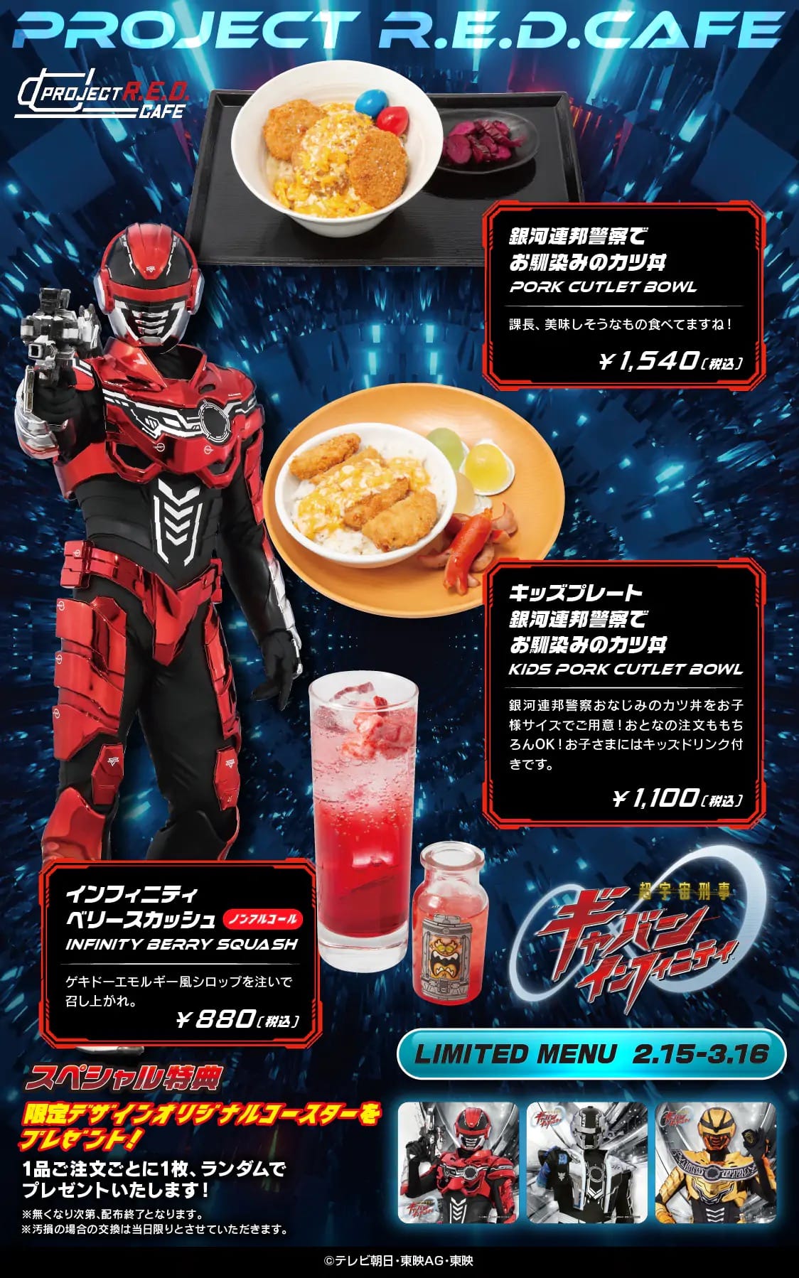 「PROJECT R.E.D.カフェ」第1弾 超宇宙刑事ギャバンインフィニティ コラボメニュー展開中!