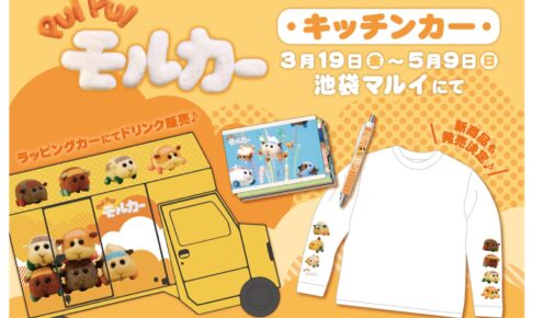 2021年5月9日までの期間「池袋マルイ」にて開催される「PUI PUI モルカー キッチンカー」では「クリアファイル」や「ボールペン」「ポストカードセット」「ロングTシャツ」などがラインナップ!