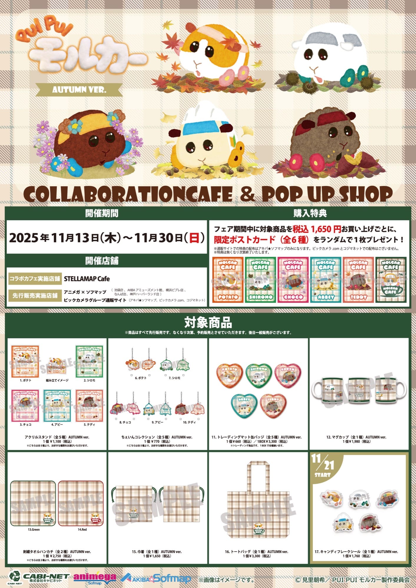 PUI PUI モルカー AUTUMN ver.カフェ in ステラマップカフェ秋葉原 11月13日より開催!