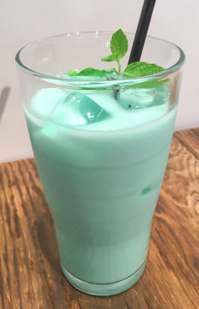 ブルーキュラソーシロップ×グリーンミントシロップ×牛乳×ミント メテオラをイメージしたミント風味のミルク。ブルーキュラソーと牛乳の優しい甘さの後にミントが香るドリンクです |