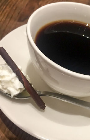 | コーヒー×ヘーゼルナッツシロップ×チョコレート×ホイップ ブリッツ・トーカーをイメージしたナッツが香るホットコーヒー。お好みでホイップクリームを入れればタバコの煙のように白色が漂います |