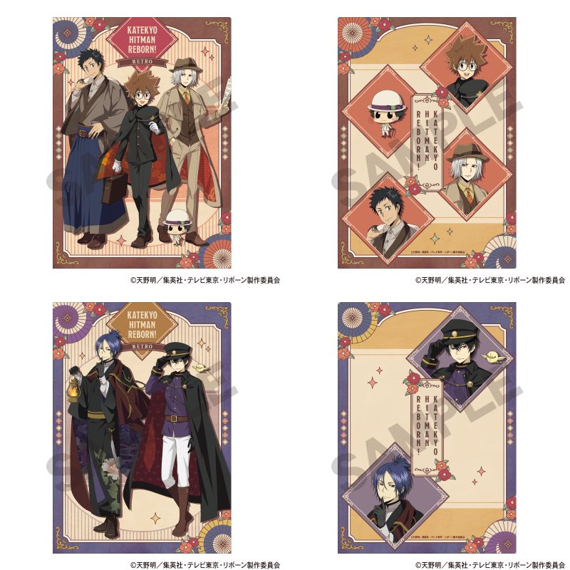 大正レトロな衣装に身を包んだ、ボンゴレファミリーのリボーン & 沢田綱吉、獄寺隼人、山本武、雲雀恭弥、六道骸ら6人の「アクリルキーホルダー」「アート缶バッジ」「クリアファイル」など全7種がラインナップ。 会場に足を運ぶのが難しかった方はこの機会に是非お迎えください!