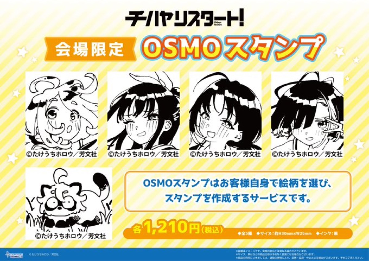 「チハヤリスタート!」ポップアップストアでは、イベント限定のたけうちホロウ先生の新規描き下ろしイラストを使用した新作グッズが多数販売される。