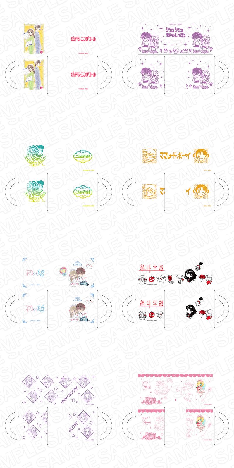 ラインナップは、『赤ずきんチャチャ』『お父さんは心配症』『GALS!』『グッドモーニング・コール』『ケロケロちゃいむ』『こどものおもちゃ』『ご近所物語』『ちびまる子ちゃん』『ときめきトゥナイト』『姫ちゃんのリボン』『ベイビィ★LOVE』『星の瞳のシルエット』『ママレード・ボーイ』『愛してるぜベイベ★★』『アニマル横町』『初×婚』『神風怪盗ジャンヌ』『CRASH!』『絶叫学級』『つばさとホタル』『HIGH SCORE』『ハニーレモンソーダ』『ひよ恋』『古屋先生は杏ちゃんのモノ』『夢色パティシエール』『ロッキン★ヘブン』など時代を超えて愛される全26作品が登場。