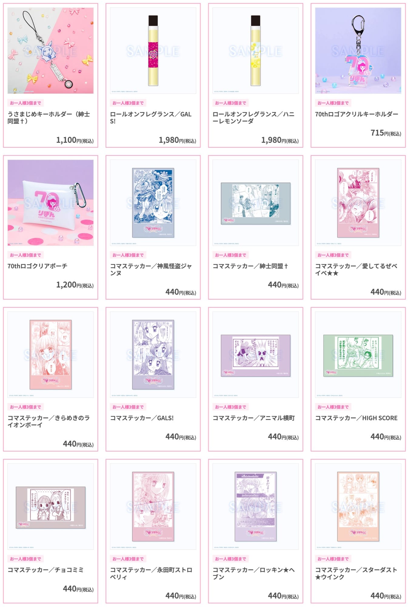 アニメ「70th りぼん」展では、『神風怪盗ジャンヌ』『紳士同盟†』『愛してるぜベイベ★★』『アニマル横町』など、平成と令和の人気作品にスポットを当てた展示やグッズ販売を展開!