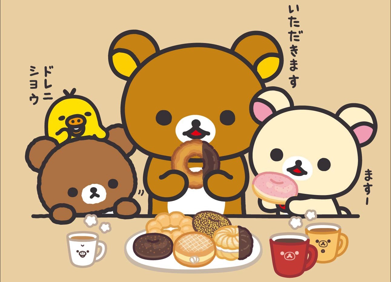 食べることが大好きなリラックマが笑顔でおいしそうにドーナツをまくまく♪