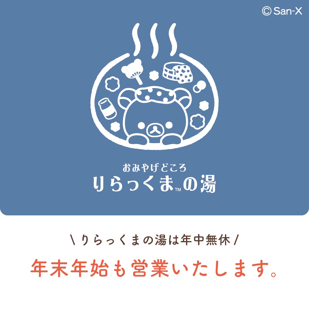 画像2~4枚目か、HPをご確認ください。年末年始も皆様のご来店をお待ちしております♪https://t.co/PHHsOD63Kd#りらっくまの湯 #リラックマ pic.twitter.com/N8DW7nJsYX