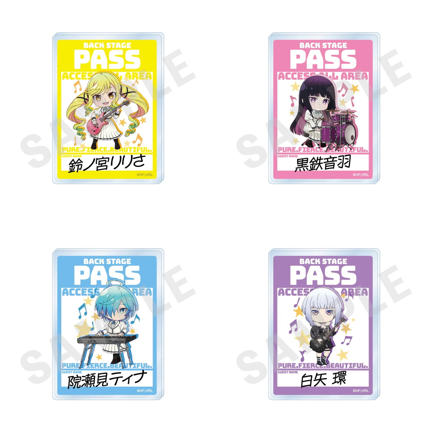 さらに、ミニキャライラストのお名前バッジはバックステージ・パス風のデザインで作品の雰囲気を楽しむことができ、場面写アクリルスタンドにはオープニングとエンディングも展開される。