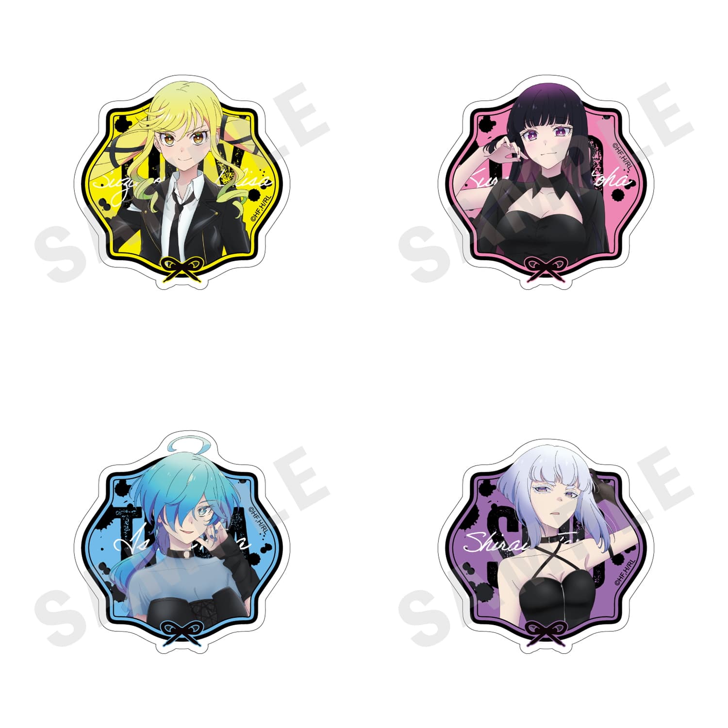 描き下ろし衣装をまとった4人の新作グッズは、缶バッジやアクリルスタンド、ワイヤー付きアクリルチャームなど、キャラクターのビジュアルを個別に楽しめるアイテムがそろう。