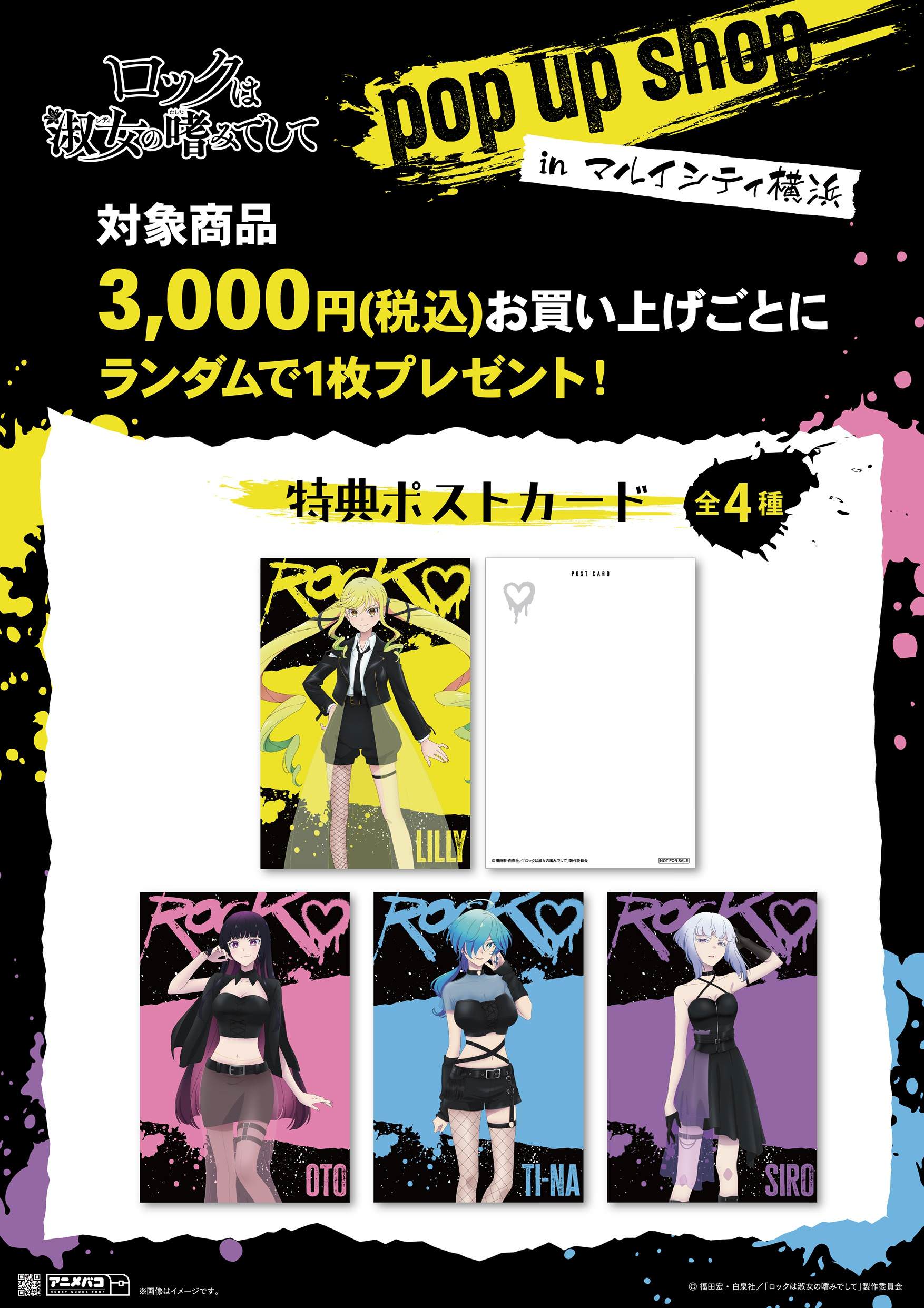 「ロックレディ」ポップアップストアにて、グッズをお買い上げ3,000円毎に特典として「ポストカード 全4種」がランダムに1枚プレゼントされる。