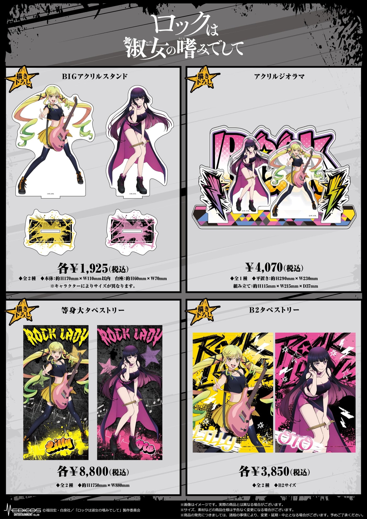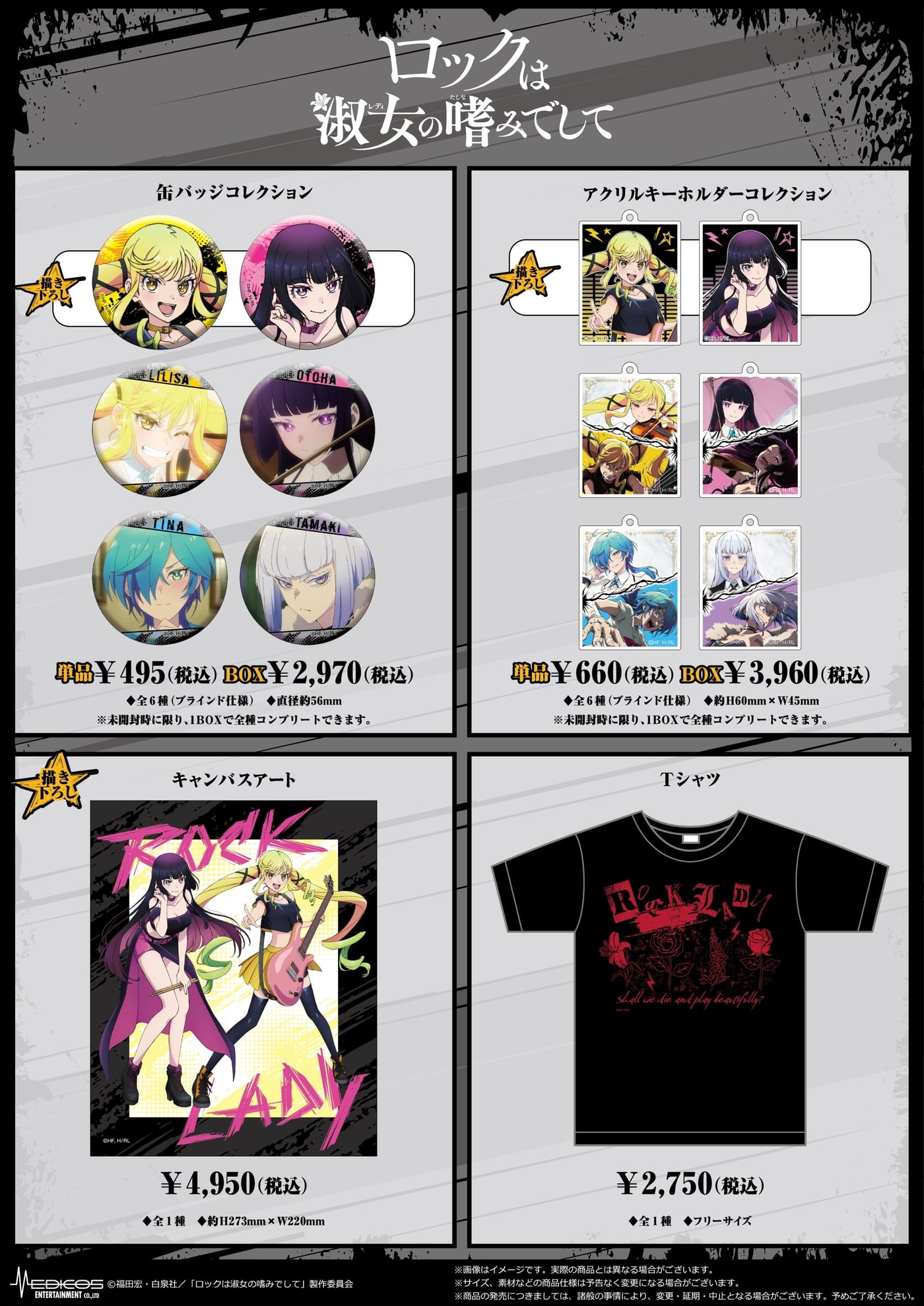 福田宏先生による人気漫画を原作とする、お嬢様×ロックの青春アニメ『ロックは淑女の嗜みでして (ロックレディ)』から、ライブ衣装をまとった黒鉄音羽と鈴ノ宮りりさの新規描き下ろしグッズが登場。