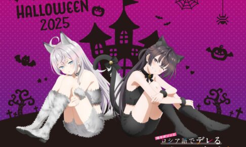今回公開されたハロウィンイラストでは、お城やお化けかぼちゃ・コウモリなどのハロインらしいシルエットイラストを背に、狼姿のアーリャ・猫姿の有希が登場!
