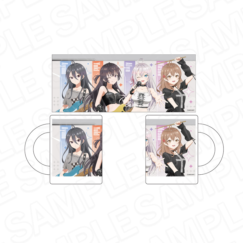 バンド衣装に身を包んだアーリャ、有希、マーシャ、綾乃たちの「マイクロファイバー」「マグカップ」「メモリアルアート」など、ポップアップストアで大好評を博した限定グッズがラインナップ。