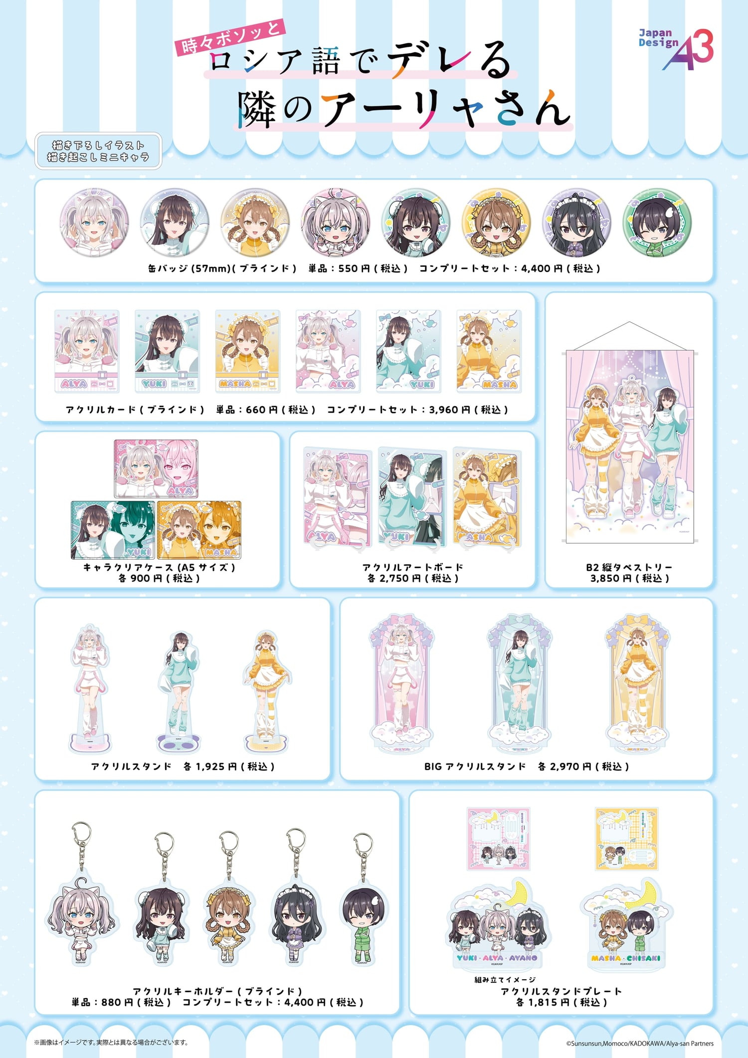 燦々SUN先生によるライトノベルを原作とするTVアニメ「時々ボソッとロシア語でデレる隣のアーリャさん (ロシデレ)」から、「ゆめかわ」をテーマにした描き下ろしグッズが一般発売される。