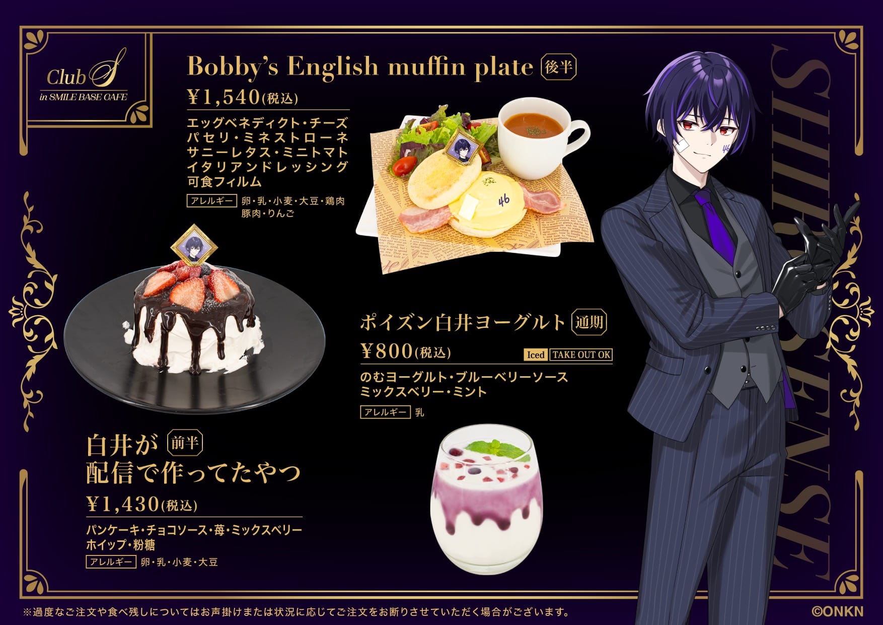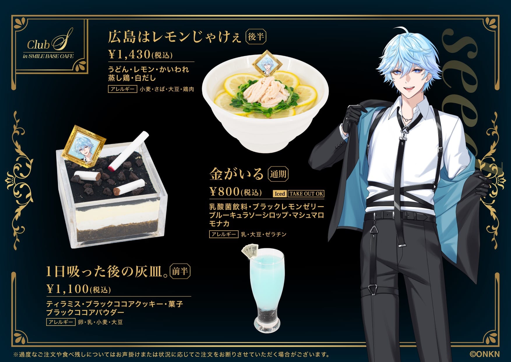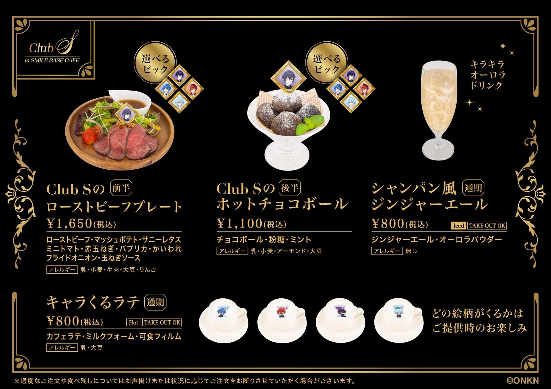 『Club S』と題したコラボカフェでは、しろせんせー・キャメロン・シード・はとねたちのホストクラブをコンセプトにしたコラボメニューや、描き下ろしイラストを使用したグッズが登場!