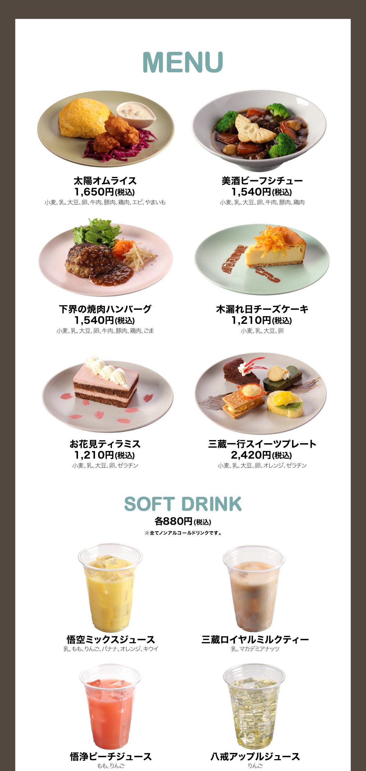 最遊記カフェ in NATSLIVE CAFE 3店舗のメニュー