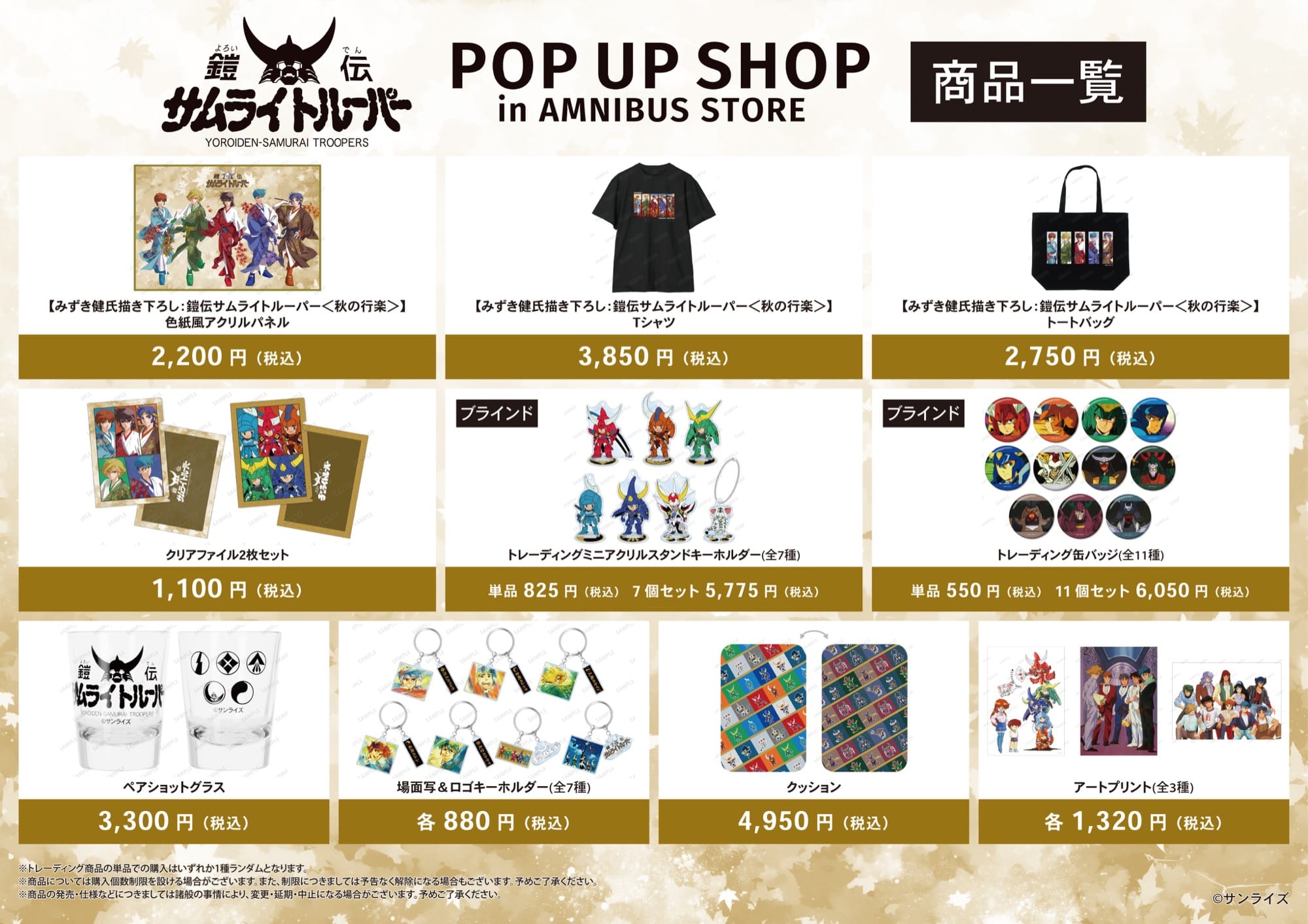 2025年11月7日より「AMNIBUS STORE渋谷」にて、アニメ「鎧伝サムライトルーパー」の新作グッズを販売するポップアップストアを開催。