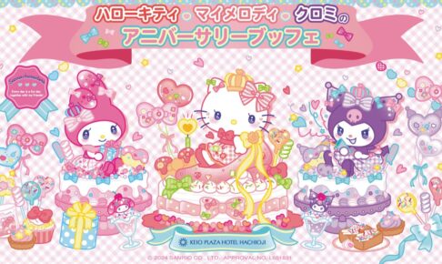2024年7月1日より東京の京王プラザホテル八王子にて開催される「ハローキティ・マイメロディ・クロミのアニバーサリーブッフェ」。