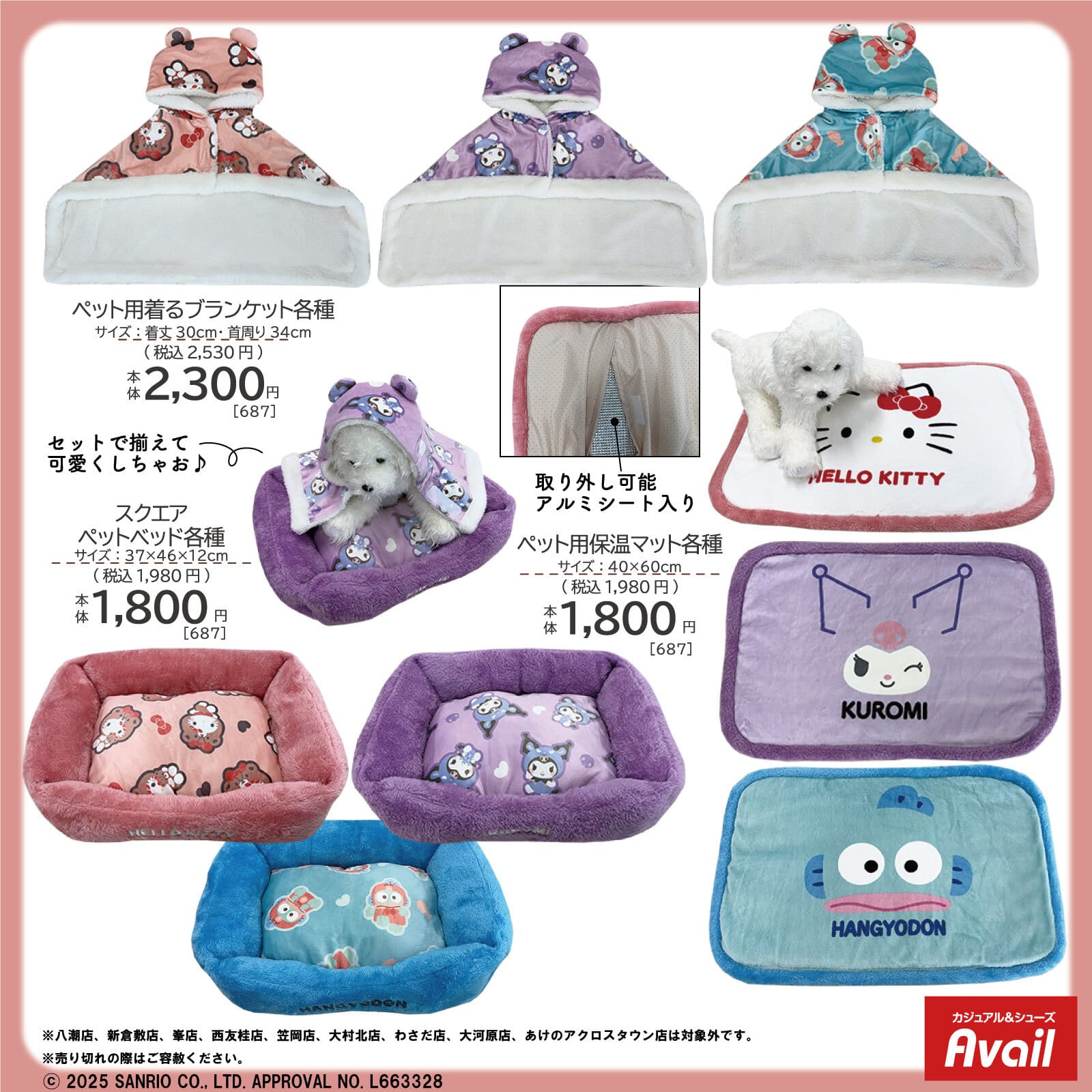 2025年10月18日より全国のアベイルにて、「サンリオキャラクターズ」のペット用グッズを順次発売!