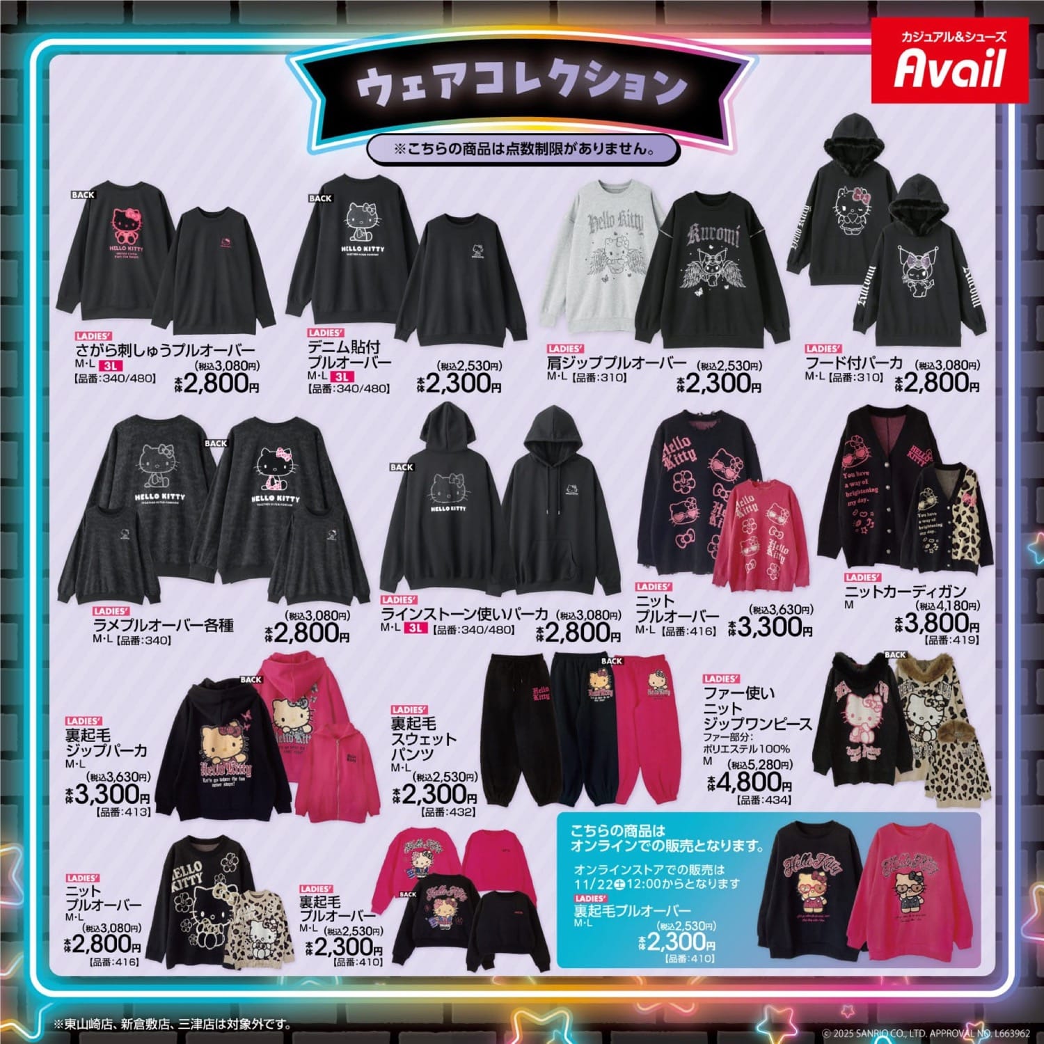 2025年11月22日より、全国のアベイルにて「サンリオキャラクターズ」のアパレルアイテムやコラボグッズを順次発売!
