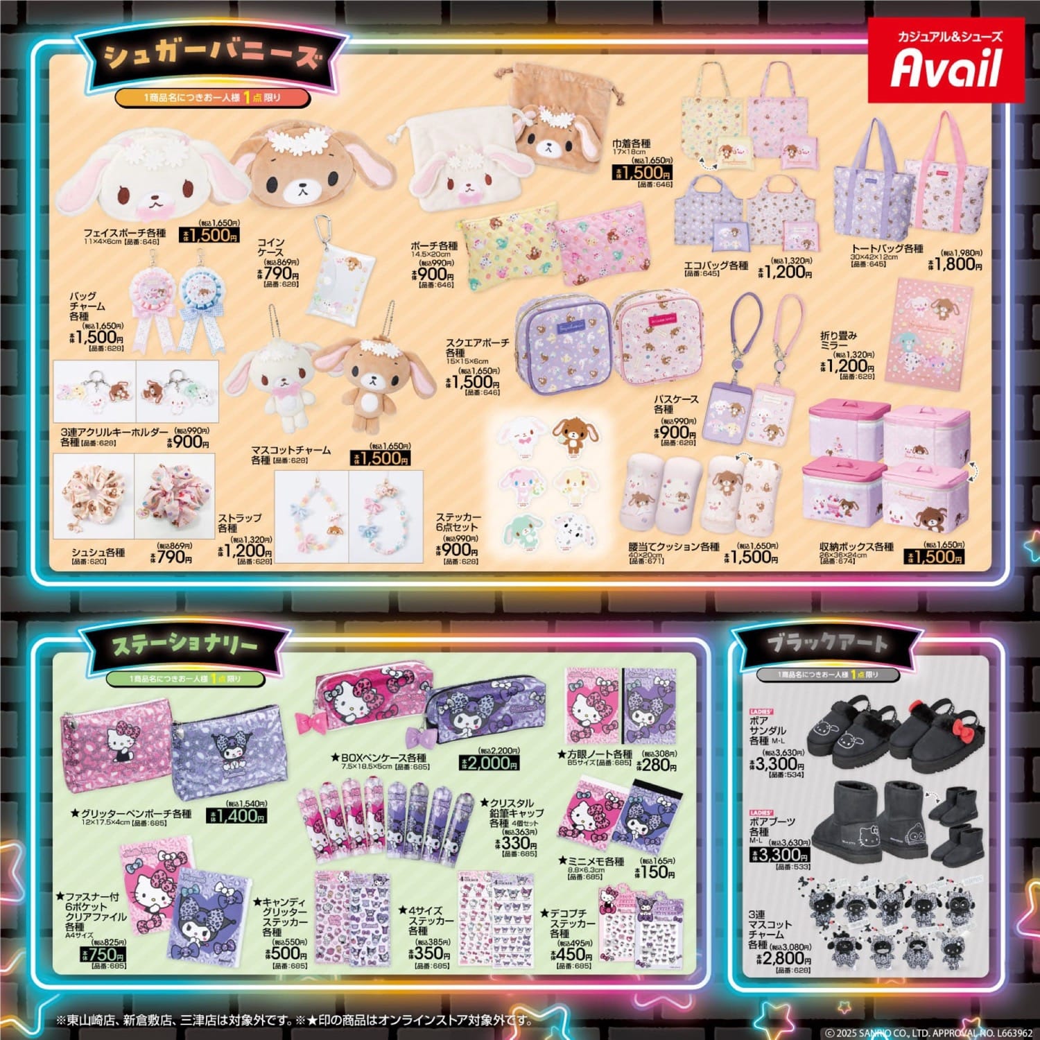 世代を超えて愛される「サンリオキャラクターズ」× しまむらグループが展開するカジュアルブランド「Avail (アベイル)」全国にて、2025年11月22日よりコラボグッズが発売される。