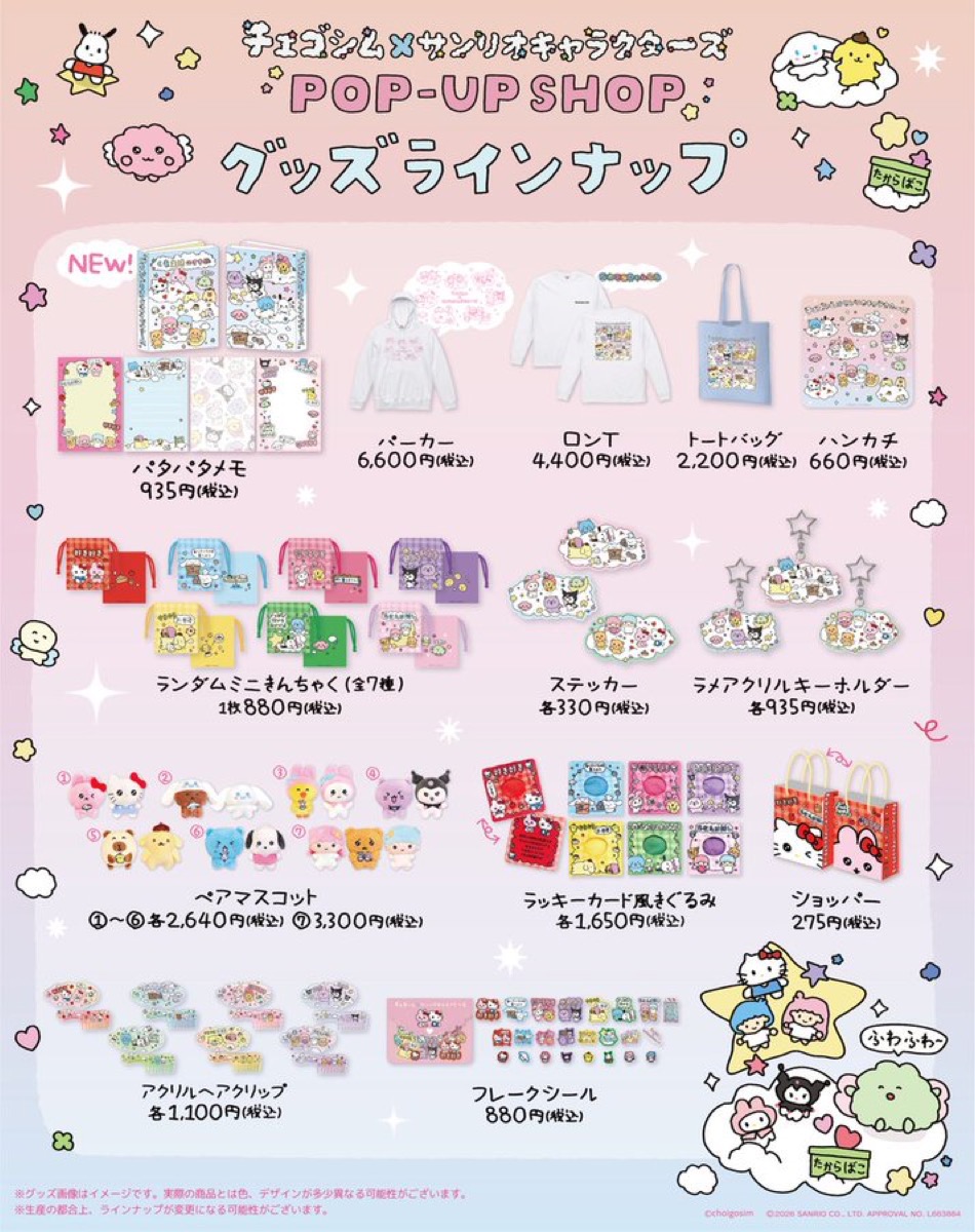 「チェゴシム × サンリオ」 ポップアップストアでは、イベント限定のゴシムちゃんとサンリオのなかまたちのコラボイラストを使用した新作グッズが多数販売される。