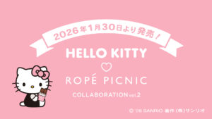 世代を超えて愛されるサンリオの人気キャラクター「ハローキティ」 × トレンドにフレンチテイストをミックスしたブランド「ROPÉ PICNIC (ロペピクニック)」のコラボアイテム第2弾が、2026年1月30日より全国のROPÉ PICNIC店舗、J'aDoRe JUN ONLINEにて順次発売される。