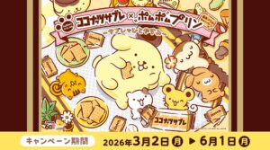 サンリオ「ポムポムプリン」 × 日清シスコ「ココナッツサブレ」のコラボキャンペーンが、2026年3月2日〜6月1日まで開催!