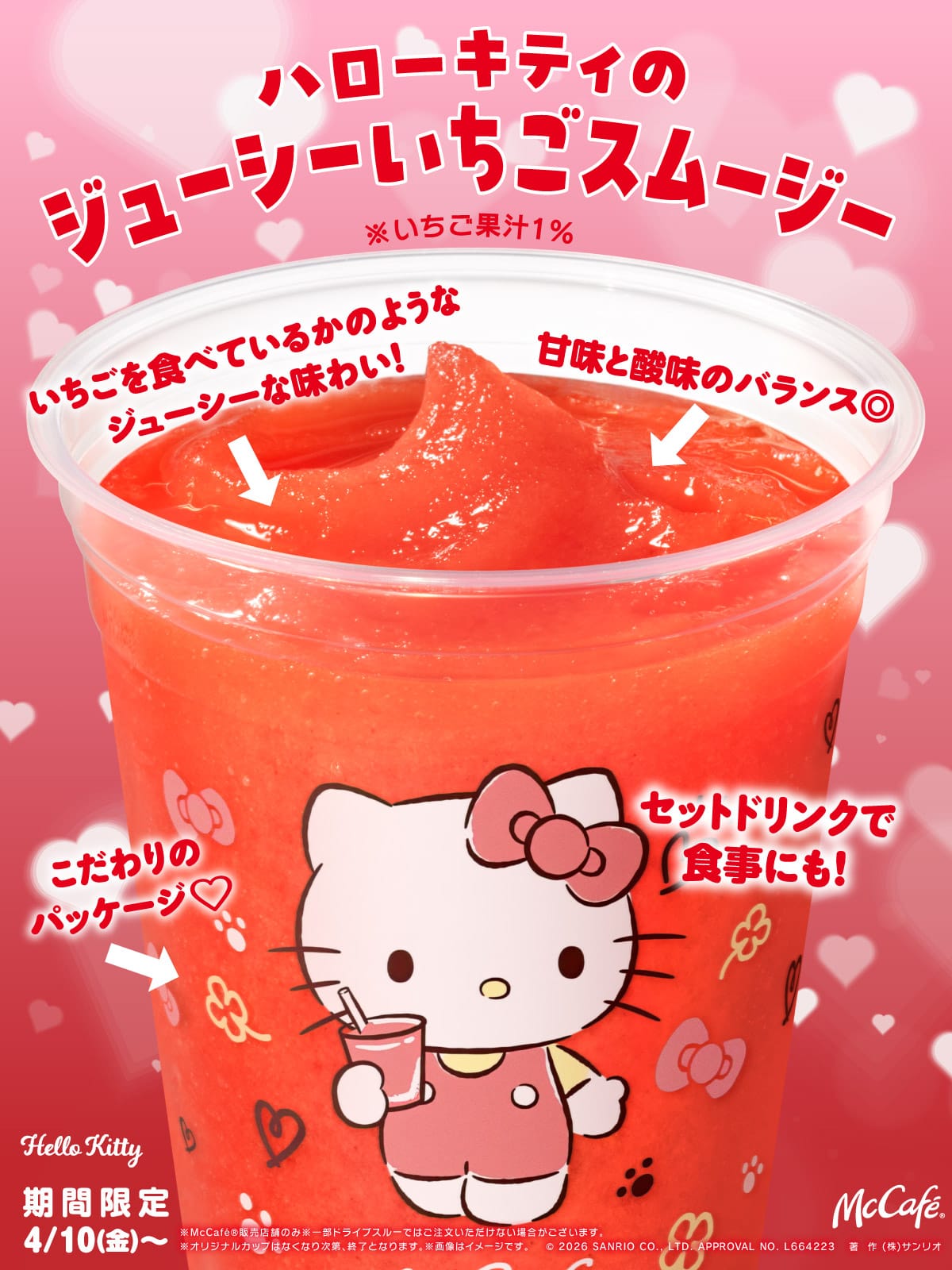 「ハローキティ & ポムポムプリン × マクドナルド全国」では、いちごスムージーとプリンフラッペが登場!