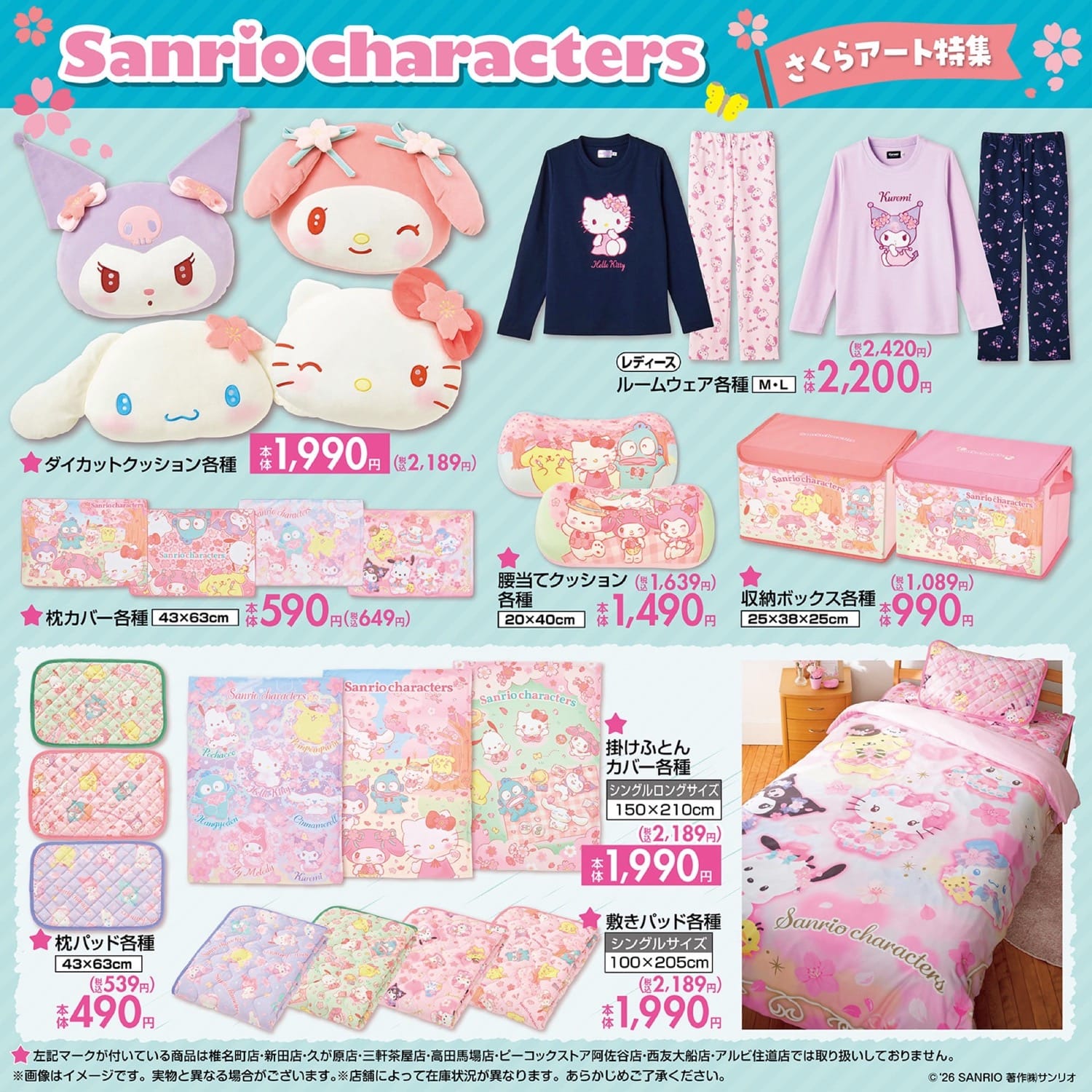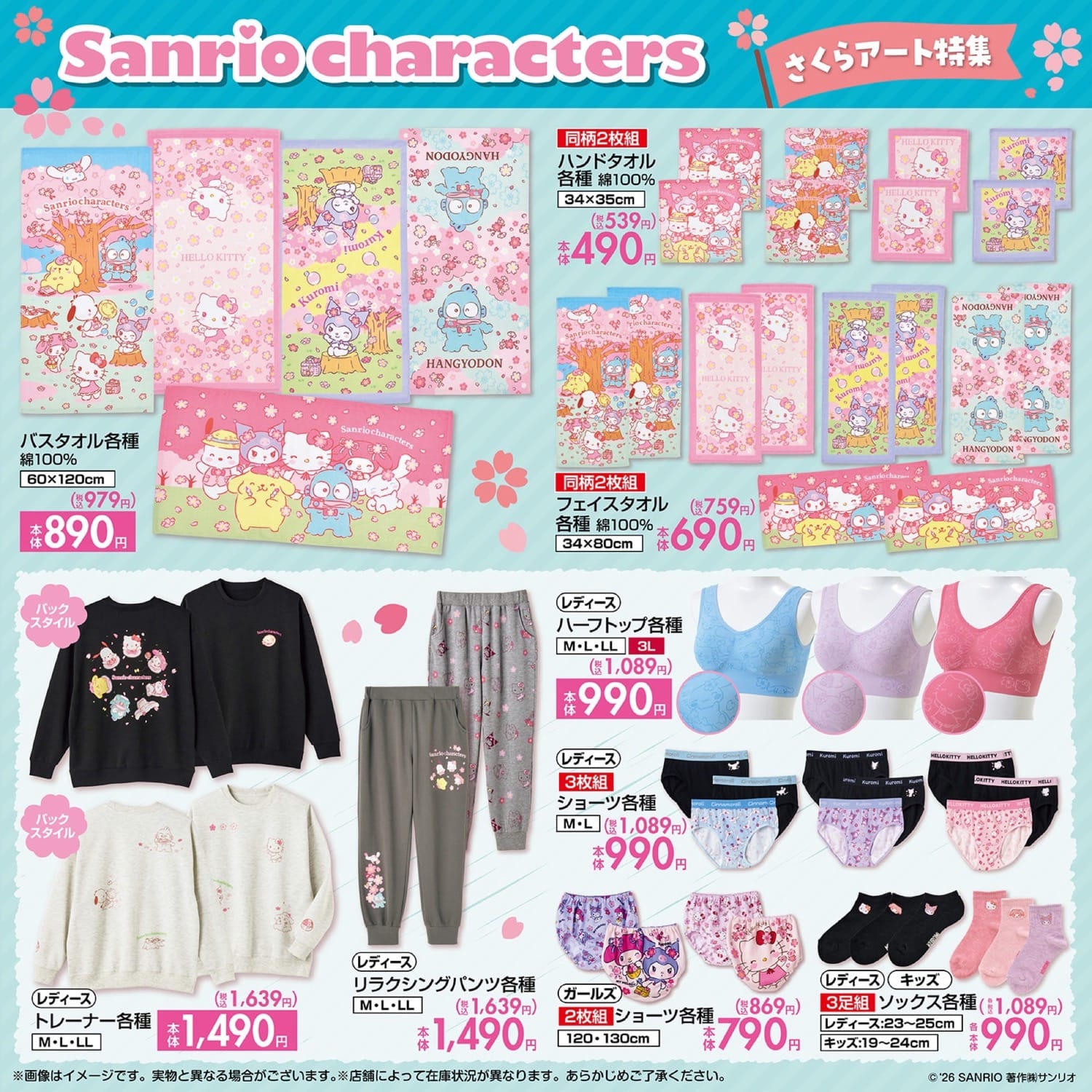 2026年1月7日より全国のファッションセンター「しまむら」と「しまむらオンライン」にて、「サンリオキャラクターズ」の“さくらアート”シリーズなどの新作グッズが多数ラインナップ!