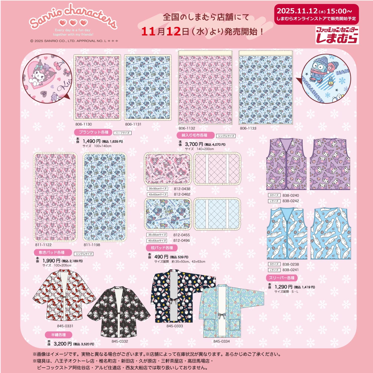 2025年11月12日より全国のファッションセンター「しまむら」と「しまむらオンライン」にて、「サンリオキャラクターズ」のアパレルアイテムやルームグッズを順次発売!