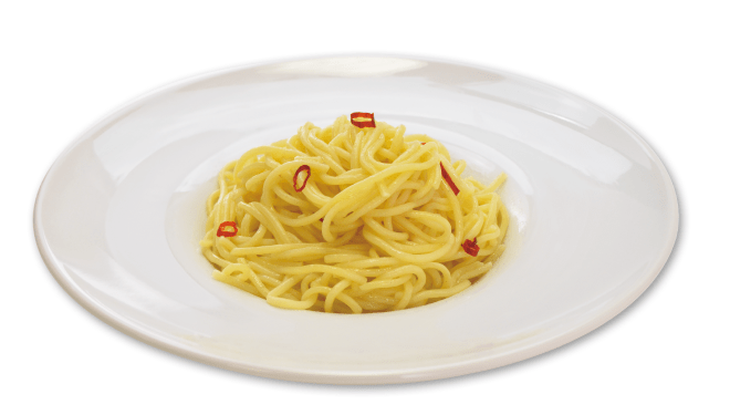 パスタ+アスパラ+ベーコン+黒オリーブ+唐辛子