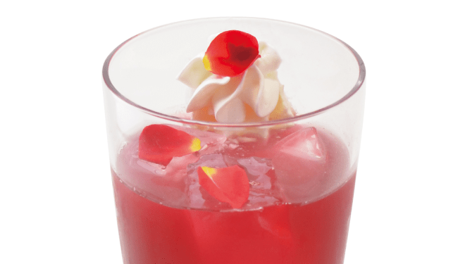 はちみつレモン+グレープフルーツジュース+バタフライブレンドティー+ホイップクリーム+唇型グミ